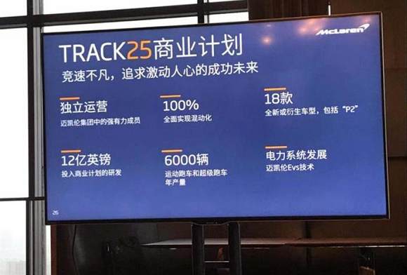 迈凯伦官方发布“TRACK25商业计划”,包括品牌运营方向、新能源、产品规划、研发投入、年产能以及电力系统技术。其中,迈凯伦在新产品部分计划推出包括P2在内的18款全新或衍生车型。 [详细]