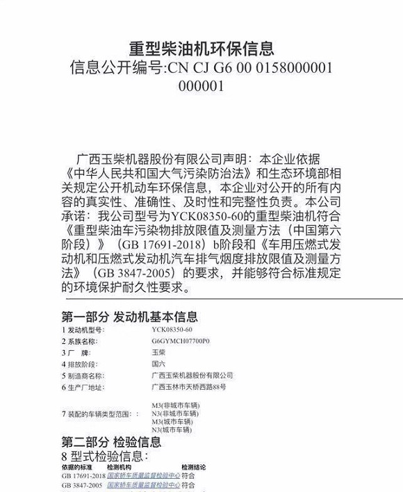 玉柴K08机型在国内率先拿到国6b阶段排放标准认证报告,主要有两点信心“加持”: