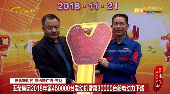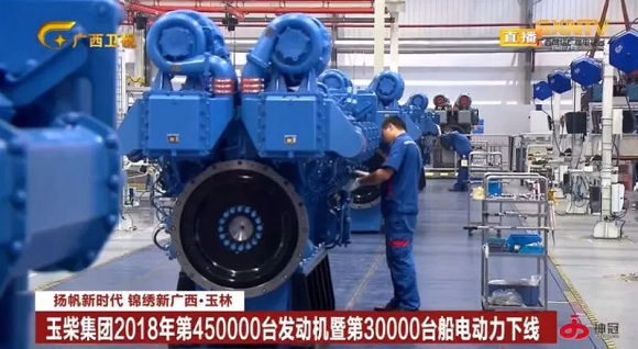近日,广西电视台通过卫星直播了玉柴今年第450000台发动机,同时也是第30000台船电发动机。