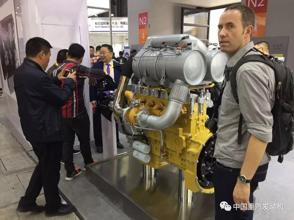 展台上中国重汽曼技术MC07发动机同样吸引了现场观众们的强烈关注。发动机上所加装的排放后处理系统为柴油氧化催化器(DOC)、颗粒物捕捉器(DPF)、选择性催化还原系统(SCR),满足非道路国四排放要求,功率涵盖180-310马力。