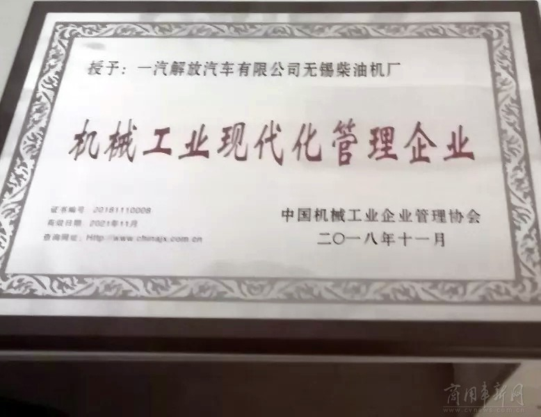 在中国机械工业企业管理协会七届六次理事(扩大)会期间,一汽解放发动机事业部(原一汽解放汽车有限公司无锡柴油机厂)的代表就一天两次登上领奖台。