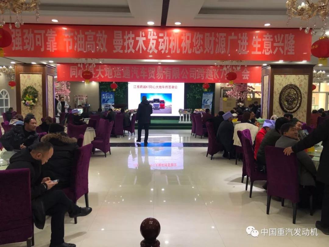 2018年12月26日,由江淮同心县大地运通汽贸主办的“江淮跨越搭载曼动力年终客户答谢会”在宁夏同心县隆重召开。
