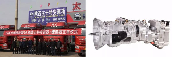 日前,又一批搭载法士特12挡斜齿大扭矩变速器+FHB320B液力缓速器的牵引车交付山西太原用户。通过车辆满载测试,用户对液力缓速器良好的辅助制动效果非常认可。