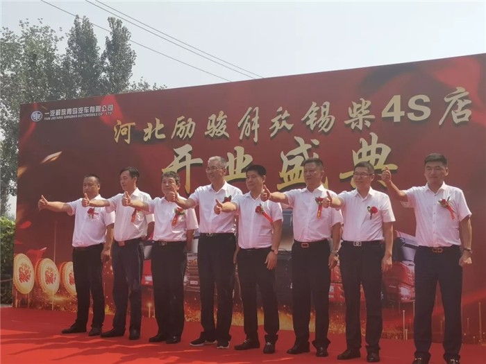 一汽解放老领导许宪志,解放公司副总经理、青岛整车事业部总经理王瑞健,青岛整车事业部高级经理纪胜师,发动机事业部副总经理黄南翔,河北励骏董事长冯红卫等领导参加了开业典礼。