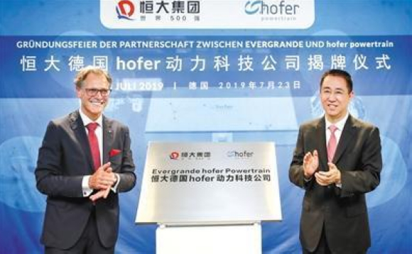 许家印与Johann HOFER为恒大德国hofer动力科技公司揭牌。
