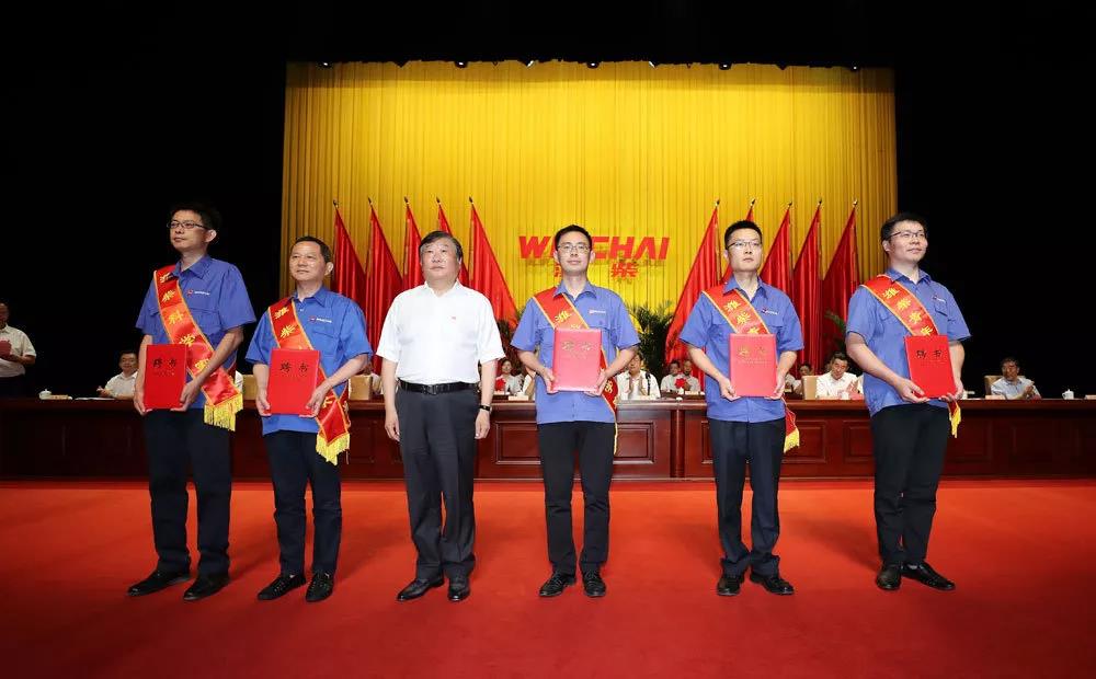 大会宣读了山东省委副书记、省长龚正对潍柴科技创新发展的批示。中国工程院院士、山东省副省长凌文为潍柴科技英雄团队授旗。