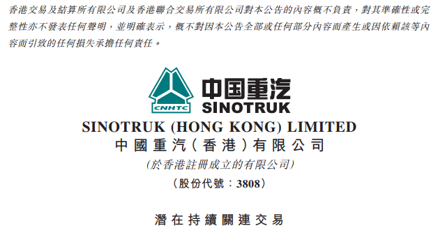 12月16日,中国重汽(香港)有限公司发布公告称,公司(为其本身及代表其附属公司)与潍柴控股订立主协议,据此,集团将向潍柴集团出售销售零部件及自潍柴集团采购零部件。