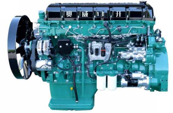 更强劲,即奥威13升超大排量领跑重型柴油机大排量发展趋势,最大功率高达550马力,最大扭矩2300 N.m ,可谓动力澎湃,随心所欲;更低耗,即作为国内首家采用四气门顶置凸轮轴的重型柴油机,220ba超高爆发压力,进排气效率更高,燃烧更彻底,外特性最低油耗185g/kWh,10万公里超长换油周期,极低的机油损耗;更可靠,即与国际顶级零部件供应商联合开发高可靠性运动件,B10寿命高达150万公里,质量指标行业领先;更安全,即拥有国内首创独立摇臂制动技术,较FCB(集成式制动)功率提升23%,下坡制动更有效,减速制动更给力,为卡车司机安全行驶保驾护航;更智能,即利用“健康管家”系统,能够精确诊断发动机故障,预测工作寿命及可能发生的故障,制定合理的发动机维护计划,保障发动机可靠运行;更舒适,即发动机采用直齿鼓形齿轮传动系统、全浮式气缸盖罩等多种先进设计,确保噪音和振动达到国际水准。