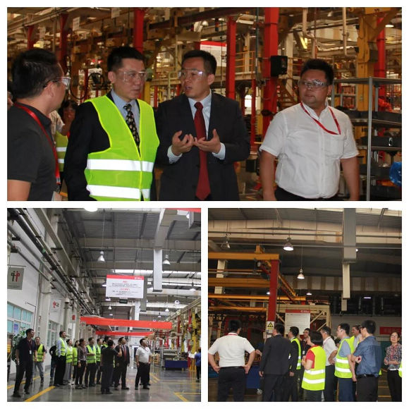 图为西安康明斯管理层及西安康明斯技术专家引导重庆康明斯各位领导参观考察M11发动机在西安康明斯的生产过程,为合作方分享生产制造过程中的质量管控、成本优化、交付优化等事项。