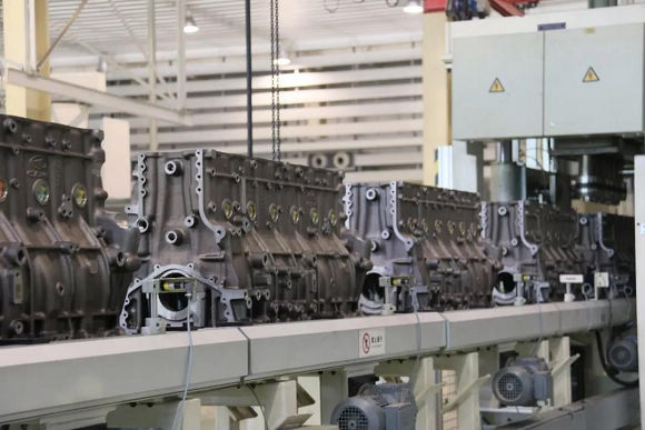 随着紧闭的大门迅速升起,映入眼帘的是3万多平米的车间环氧树脂涂料地面光洁如镜,一尘不染;恒温恒湿的车间工作环境让人无论严寒酷暑都始终如沐春风;20台高精度数控加工机床正在忙碌的工作着,加工好的缸体、缸盖毛坯件通过悬空轨道上的桁架机械手,缓缓地自动运送到机床里,进行下一步切削加工……这里,通过采用创新的信息化控制方案实现了工厂多品种柔性化智能化共线生产需求;这里,通过大量采用机器人及岛式工作站,设备系统的占地面积较传统工艺方案减少20%以上,生产线自动化程度达80%;这里,是华菱星马汉马发动机生产车间——示范性国家国际科技合作基地、两化融合国家级试点示范单位。