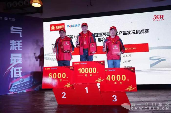 值得一提的是,冠军刘立春以决赛23.5172kg/100km的气耗成绩超越了陶海华在预赛中创造的最低气耗23.7290kg/100km成绩 !伴随着冠军的出现,“蓝天保卫者、重汽公益行”的第二笔1万元公益基金随之诞生,爱心随着比赛的进行也在不断地传递。