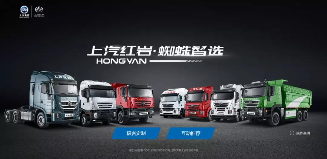 2018年12月18日,在由中国物流与采购联合会、中国交通运输协会物流技术装备委员会和上汽依维柯红岩商用车有限公司(以下简称“上汽红岩”)联合举办、中国汽车工业协会支持的第二届中国重卡博鳌论坛上,上汽红岩在卡车行业首创的C2B个性智能定制化平台——“蜘蛛智选”正式发布,卡车用户通过“所见即所得”的个性定制,即可买到符合自己要求的梦想卡车。