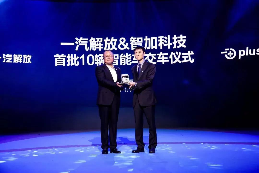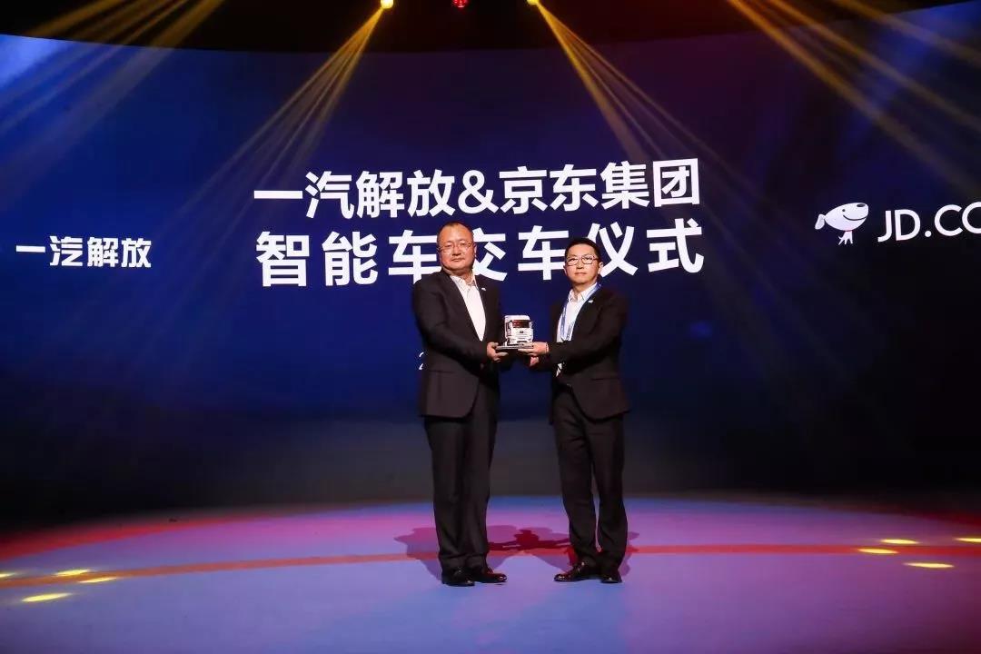 随后,一汽解放总经理朱启昕,向京东集团X事业部自动驾驶业务部总经理杨晶,智加科技创始人兼CEO刘万千博士,交付了哥伦布智慧物流开放计划首批智能车。这标志着一汽解放智能车正式进入商业化时代。