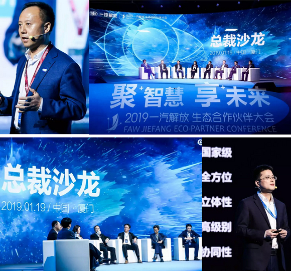 2019年1月19日,以“聚智慧·享未来”为主题的一汽解放智慧生态合作伙伴大会在厦门隆重举行,中国一汽总经理、党委副书记奚国华,中国一汽党委常委副总经理雷平,中国一汽总经理助理、一汽解放董事长胡汉杰出席了大会,同时出席此次大会的还有大陆集团Zonar互联系统总裁及首席执行官IAN McKerlich,满帮集团董事局主席王刚等50余家合作伙伴的高层领导和嘉宾,其中总裁、CEO级别以上20余人,副总裁级别以上30余人。此次大会的召开标志着一汽解放智慧转型战略全面启动。面对未来新能源、物联网、大数据、人工智能、区块链等新技术的加持,一汽解放将智慧交通运输解决方案提供者作为新的战略愿景,以开放共享的理念、科技创新的产品,为物流行业智能化发展赋能,为智慧城市升级赋能。