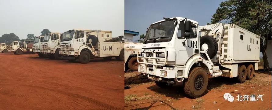 2017年6月,依托北方公司国际化经营平台,北奔重汽击败众多强大竞争对手,再次选型成为联合国维和部队军用车,62辆白色“UN”北奔重卡再次出征海外。