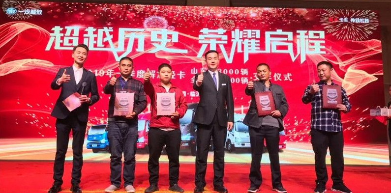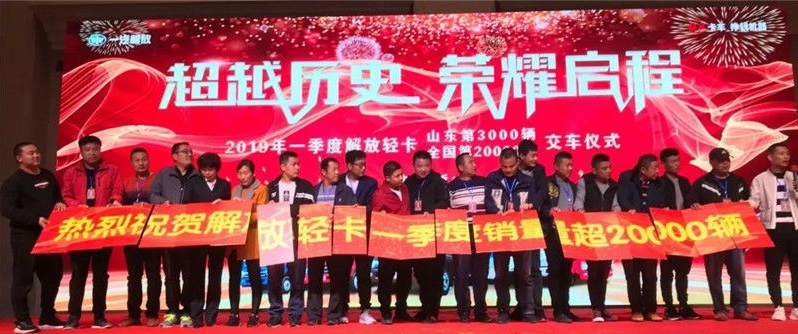 4月13日,一汽解放轻卡2019年度,山东区域第3000辆暨全国第20000辆解放轻卡用户交车仪式,于山东临沂华盛江泉酒店开启。解放公司副总经理兼一汽解放青岛汽车有限公司党委书记尚兴武书记发表讲话,表达了对各界的感谢与支持。各地区经销商及绝对伙伴代表等200余人共聚一堂,见证共同奋斗的荣光。