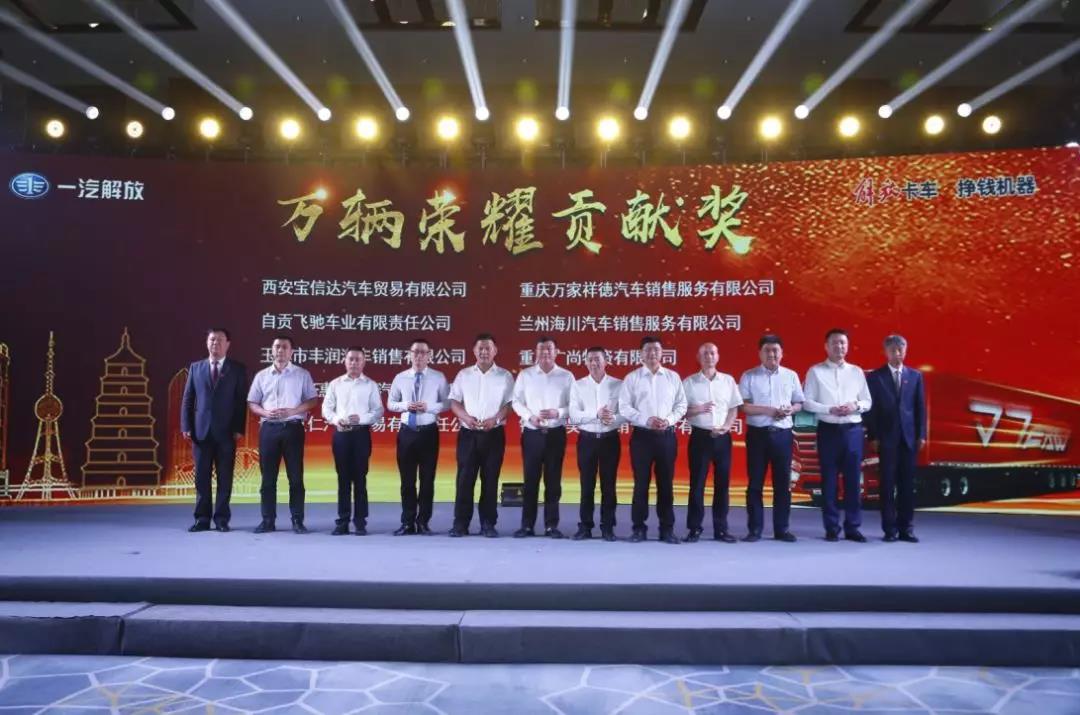 2019年4月23日,一汽解放“万辆荣耀 领越传奇”——西部区域万辆庆典仪式在西安举行,一汽集团总经理助理、一汽解放汽车有限公司董事长胡汉杰,一汽解放汽车有限公司总经理助理、一汽解放汽车销售有限公司总经理王志才,一汽解放汽车有限公司成都厂厂长王忠诚,一汽解放汽车有限公司传动事业部常务副总经理张兵,一汽解放汽车销售有限公司副总经理兼一汽解放青岛公司副总经理于长信,一汽解放汽车有限公司发动机事业部副总经理黄南翔,一汽解放汽车销售有限公司副总经理、解放西部营销部部长李玉峰等领导出席会议,与到场的长期以来一直支持解放的媒体朋友、经销商伙伴和用户朋友们欢聚一堂、共襄盛举。
