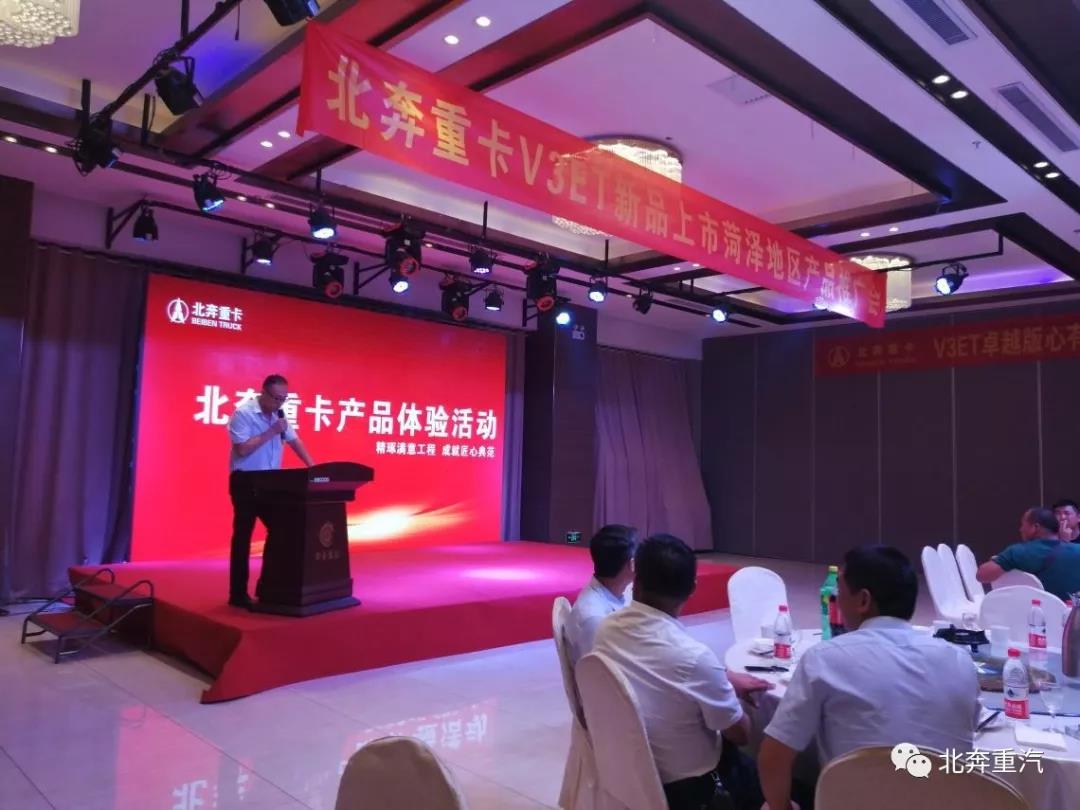 2019年7月29日,迎着夏日炎炎的太阳,北奔重卡与各位卡友相约在牡丹之乡、尧舜故里菏泽,召开了主题为北奔V3ET新品上市产品推介会,参加此次活动的新老客户、二级经销商等百余人。