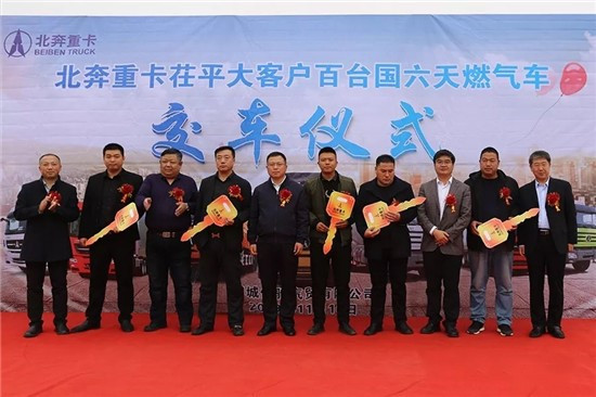 2019年11月16日,北奔重卡茌平大客户百台国六燃气车交车仪式在聊城茌平隆重举行。在以山东信发铝电集团为运输平台的细分市场,北奔重卡国六燃气车正在继续书写传奇。7月到11月,围绕信发铝电集团为运输平台的北奔重卡茌平大客户共订购北奔重卡国六燃气车163台,火热态势不减、频传捷报,北奔重卡国六燃气车得到了终端客户认可,在仪式现场又成功斩获现场订单95台。