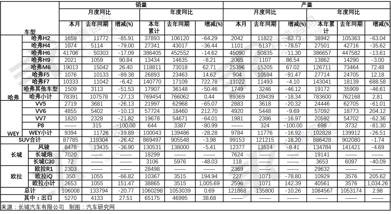 连续四年突破百万销量 长城汽车2019全球销量超106万辆