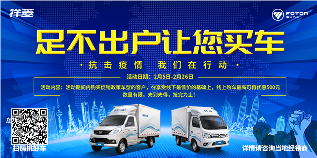 如果不是这场疫情,复工潮下,卡车司机早已纷纷回到岗位,卡车市场或也已人声鼎沸。但关键时刻,许多车企不得不挑起抗疫大旗,与广大卡友一起冲锋。为了支持抗疫,为了提供更优质的服务,为了让广大用户为即将复工做足车辆销售准备,近日福田祥菱推出一大波战疫承诺和服务措施,其中包括延保、0利息购车、在线购车优惠、不分品牌免费救援,切合实际迎合了当下市场的需要。