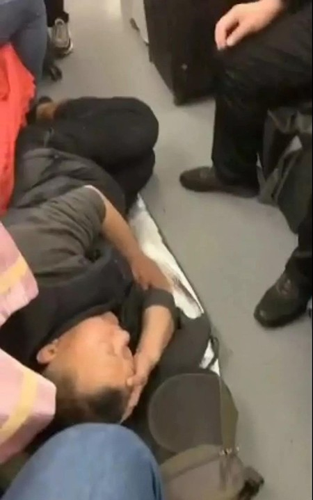 图为送车公司将车辆送达天津后,买不到返程车票,睡在车厢过道上