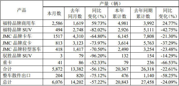 其2017年上市的自主品牌轻客产品——江铃特顺,2020年2月实现销售258辆,同比下降81.09%;1-2月份,江铃特顺累计销售2049辆,同比下降32.44%。