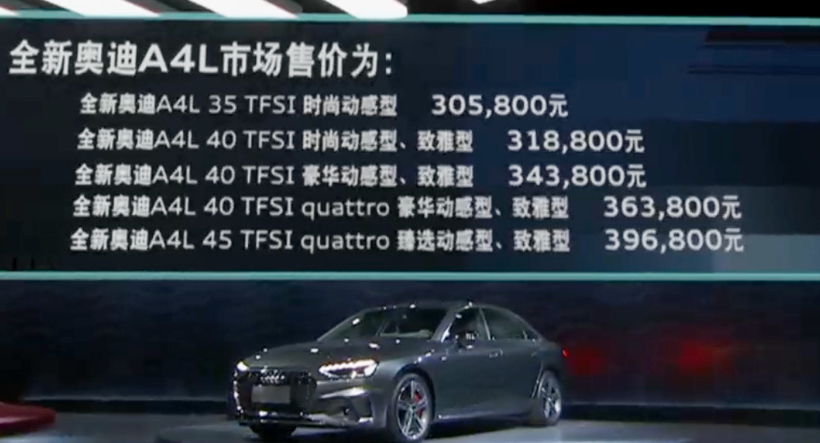 2020年4月10日,新款奥迪A4L正式上市,全系共有5款车型,售价为30.58~39.68万元。新款奥迪A4L全系搭载第三代EA888