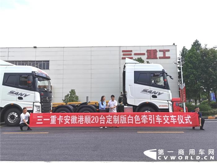 2020年5月30日,三一重卡再次迎来一批特别定制版订单——20辆白色车身的英杰版500马力牵引车,这是继蓝色定制版危化品牵引车之后的三一重卡的第三种颜色。