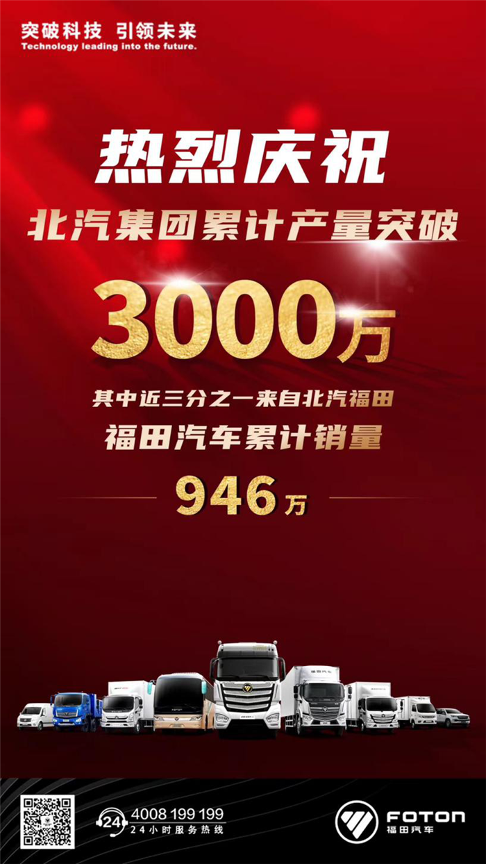 北汽集团产量突破3000万辆 福田汽车贡献三分之一