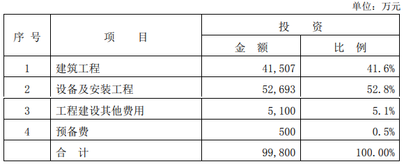 本项目计划新增建设投资99,800万元。项目的建设周期为26个月。
