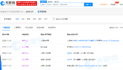 天眼查信息显示,南通皋开汽车制造有限公司在今年11月发生多次工商信息变动:股东由南通嘉禾科技投资开发有限公司(国有独资企业)变更为Scania CV Aktiebolag,企业类型变为有限责任公司(外国法人独资),注册资本增至20亿元;经营范围新增道路机动车辆生产、汽车新车销售、运输设备租赁服务等;此外法定代表人、主要管理人员发生变动,斯堪尼亚集团中国区执行总裁何墨池(Mats Harborn)担任公司董事长。