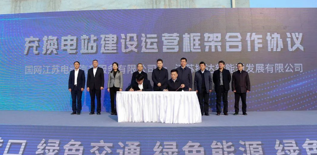 11月30日下午,江苏省首批港口新能源重卡投用启动仪式在南京港新生圩分公司举行,15台华菱纯电动重卡在港口正式投用,这标志着华菱新能源重卡正式进入江苏市场。江苏省工业和信息化厅、南京市交通运输局相关部门负责人,国网江苏电力公司、江苏省港口集团、南京港集团相关部门、单位负责人参加启动仪式。