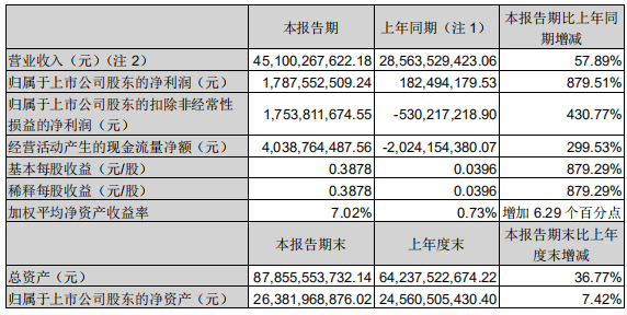 4月30日,一汽解放发布2021年第一季度报告,公司实现营业收入451.00亿元,同比增长57.89% ;归属于上市公司股东的净利润17.88亿元,同比增长879.51%。