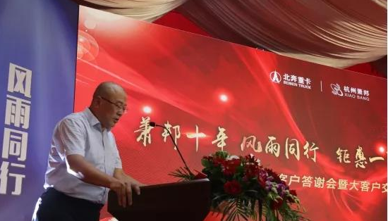 庞保林在讲话中强调,德龙钢铁与北奔重型汽车集团有限公司的签约,标志着德龙钢铁在调整运输结构上,迈出了坚实的一步。德龙钢铁作为区里、市里的龙头企业,近年来不仅为区域经济建设作出了积极贡献,在环保方面也取得了令人瞩目的成绩,德龙在环保上的优秀经验做法,为行业绿色高质量发展,提供了可复制、可借鉴的模板。