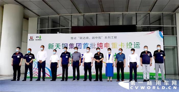 2021年8月5日,新天钢集团首批纯电重卡投运启动仪式在天津成功举行,20辆充换一体华菱汉马电动重卡顺利交付客户。天津市交通运输委党委委员、副主任刘道刚,吉利商用车集团总裁、汉马科技集团董事长范现军,新天钢集团执行总裁阚永海,新天钢集团党委副书记、纪委书记、副总裁、德达物流董事长赵斌,汉马科技集团副总经理、营销公司总经理丁哲,新天钢集团副总裁、天钢公司党委书记张纪星等领导和嘉宾出席了启动仪式。