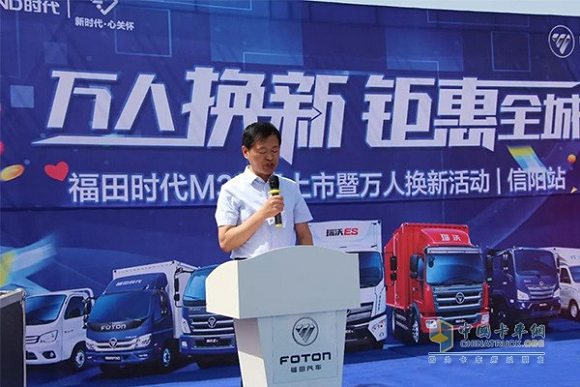 2018年5月23日,“品质就是效益”--新一代高效物流轻卡福田时代M3 跃新上市发布会在信阳金牛农产品物流园举行。来自信阳市物流协会、信阳市汽车经销商商会、福田时代中原大区的相关领导以及当地主流媒体、经销商、客户朋友共同见证了福田时代M3的跃新上市。