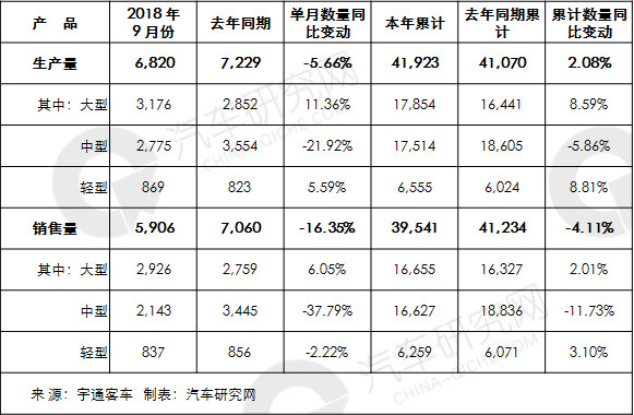 宇通客车发布9月份产销数据 轻客同比增长3.10%