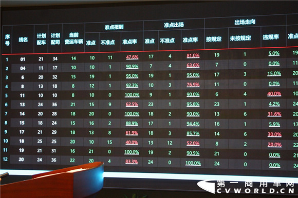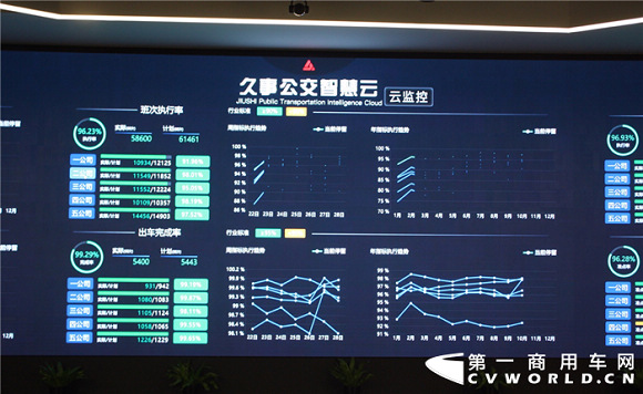 在云平台中的“云监控”模块,则基于营运全过程管理,对车辆、人员、场站等异常情况进行预警和实时监控管理。“指挥中心日常主要工作就是在此界面上,进行实时监控和管理。”工作人员介绍,根据第三方测评指标体系,久事公交建立起首末班车准点率、起讫站发车准点率、班次执行率、出车完成率、运营里程执行率等全面的行业指标监管。