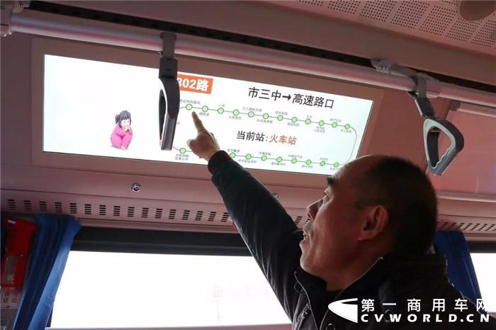 车厢内安装有电子导乘图,线路走向一目了然,方便乘客乘坐车辆。