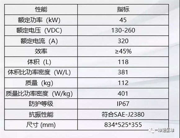 1月2日,雄韬氢雄微信公众号发布消息称,2018年12月31日公司40台氢燃料电池公交车全部上牌,交付大同公交运营,这是山西省首批氢燃料电池公交车的上线。该批车辆配置雄韬氢雄独立研制开发的XTQX3045C燃料电池发动机系统(性能指标如下图所示),保证车辆在大同零下20℃-零下30℃环境下正常运行。