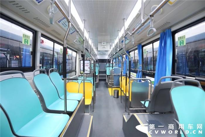 此次株洲投运的98辆车型,为全通低地板结构,车内空间平整宽敞,空间利用率好,可最大限度的发挥车辆的运载能力;其低地板结构车厢离地高度≤350mm,并配合气囊升降系统,上下客更方便,可有效减少上下车等待时间。