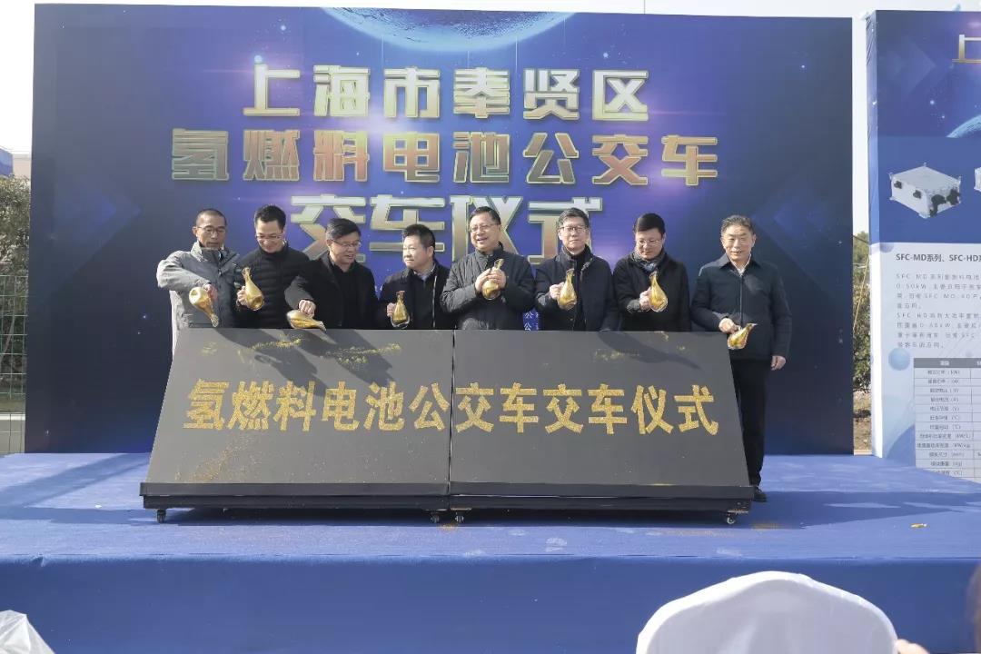 2019年1月18日上午,“上海市奉贤区氢燃料电池公交车交车仪式”在上海神力科技有限公司(以下简称“上海神力”)举办。由上海神力联合上海申龙客车有限公司研发的两款氢燃料电池公交车,正式交付上海奉贤巴士公共交通有限公司、上海奉贤汽车客运有限公司,实现首次上海市氢燃料电池公交车“非项目性商业化”交付。上海市科学技术委员会副主任干频、上海市奉贤区人民政府副区长顾佾、上海市新能源汽车推进办公室主任刘建华等出席仪式。