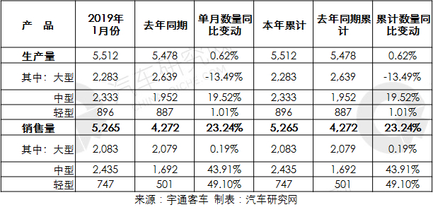 宇通客车发布1月份产销数据,轻客销量同比增长49.10%