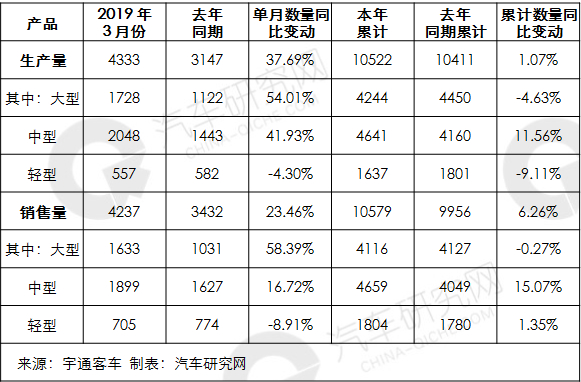 销量同比增长6.26% 宇通客车3月产销数据出炉