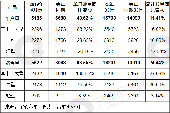 附:宇通客车2019年4月份产销数据快报