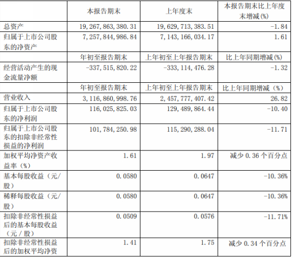 近日,东风汽车股份有限公司发布了2019年第一季度报告。报告数据显示,本报告期末营业收入3116860998.76 元,上年度末2457777407.42 元,本报告期末比上年度末增加26.82% 。同时,本报告期末其归属于上市公司股东的净利润为116025825.03 元,上年度末为129489864.44 元,同比利润减少了10.40 %。此外,截止本报告期末基本每股收益0.0580 元/股,总资产达19267863380.31 元。