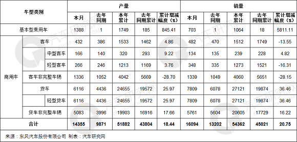 东风股份前4月累计产销量均超5万 增速增长18.44%和20.
