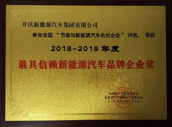 “2018-2019年度中国节能与新能源汽车名优企业评选”活动同期举办,本次评选旨在推选节能与新能源汽车领域的优秀企业、具有竞争力的优势产品,树立行业标杆。开沃汽车在此次评选中荣获“最具信赖新能源汽车品牌企业奖”,可谓实至名归。