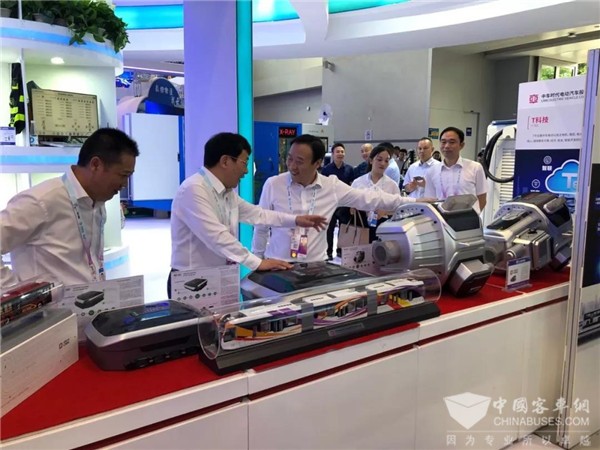 此次展会,中国中车携12米智能驾驶客车,8米纯电动客车及T动力核心系统集中亮相。重庆市副市长陆克华,璧山高新区党工委书记罗志军,中国中车副总裁徐宗祥,中车产投董事长胡洋,中国中车战略发展部部长梁兵,中车电动党委书记、董事长申宇翔等领导前来参会。